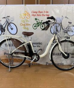 Xe đạp trợ lực Bridgestone màu trắng pin B300 tái sử dụng (đã qua sử dụng) của Fujichari với vành xe 24 kiểu dáng đơn giản mà đẹp.